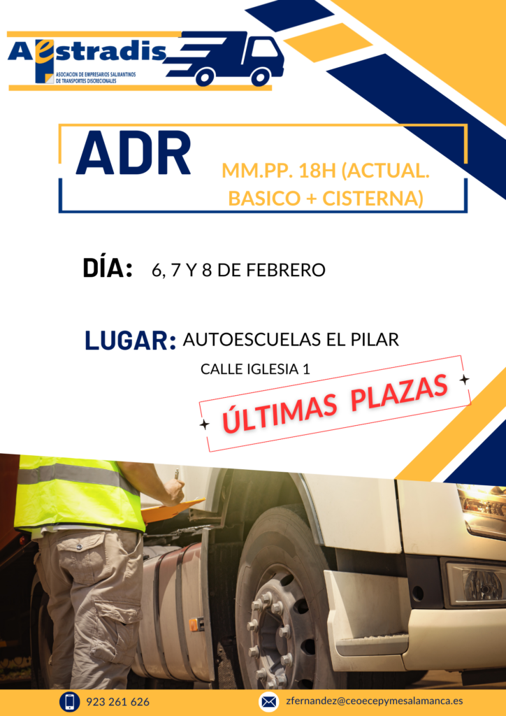 El transporte de mercancías peligrosas por carretera requiere una formación específica que garantice la seguridad del conductor, del vehículo y del entorno. Por ello, desde AESTRADIS continuamos impulsando acciones formativas dirigidas a los profesionales del sector y anunciamos la celebración de un curso ADR Básico + Cisternas, con una duración total de 18 horas, que […]
