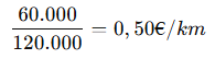 Por ejemplo, si los costes totales de un camión en un año son 60.000 € y recorre 120.000 km, el coste real por kilómetro sería: