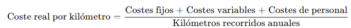 Una forma sencilla de calcularlo es sumar todos los costes fijos, variables y de personal y dividirlos por los kilómetros anuales recorridos: